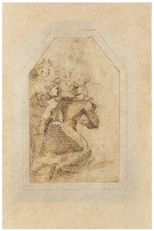 Parmi les Maîtres Anciens italiens, on remarque un petit dessin double face à la plume et lavis de bistre de Domenico Beccafumi (vers 1486-1551) représentant au recto Saint Antoine et au verso des Femmes agenouillées (estimation : 50 000-80 000€). Siennois, à peine plus jeune que Raphaël, Beccafumi a été dès l’enfance enclin au dessin. Plus tard, à Rome, il copia les peintures de Michel-Ange et de Raphaël ainsi que les œuvres antiques : il devint « fier dans le dessin, fécond dans l’invention, très séduisant par la couleur ». Rentré à Sienne, il éblouit ses contemporains par ses dons jusque dans le tracé de ses perspectives. Le vénitien Paolo Caliari dit Veronèse est également représenté avec un exceptionnel Saint Georges terrassant le dragon à la plume et à l’encre (estimation : 40 000-60 000€).
