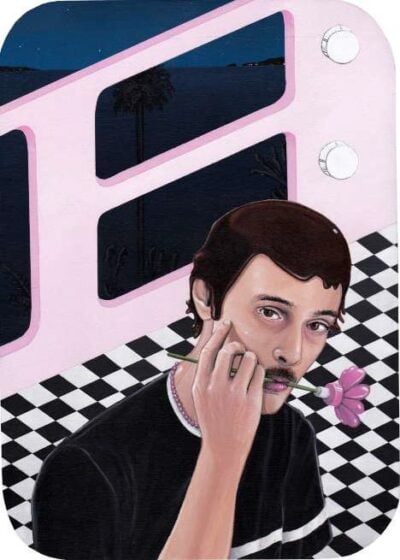 D’ailleurs, les cadrages originaux et resserrés – imaginés comme un point de vue caméra – nous privent souvent d’une partie de l’image, et participent de cette dualité surréaliste qui exalte notre sensation d’inconfort. C’est bien là le talent de Jean Bosphore : concilier les contrastes dans un tout unifié par une ligne précise et des couleurs franches. Ce sont ces mêmes plages colorées acidulées qui induisent ces jeux de fausse perspective. De la même manière que David Hockney transformait un espace apparemment plan en une surface tridimensionnelle grâce à ses larges zones de couleur pure, la palette lisse et épurée de Bosphore lui permet de creuser la profondeur de ses oeuvres.